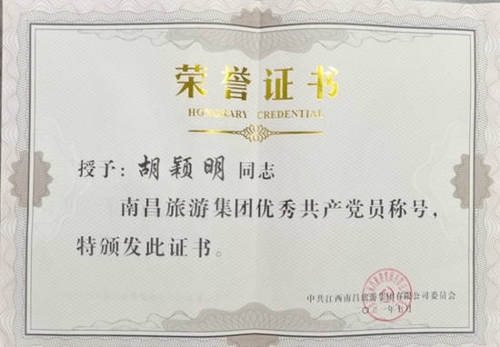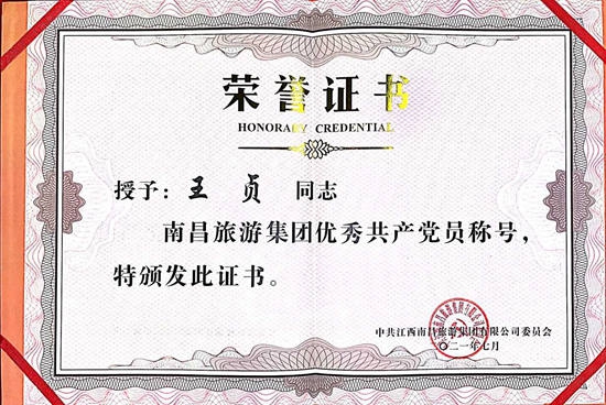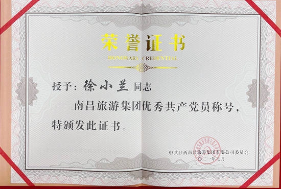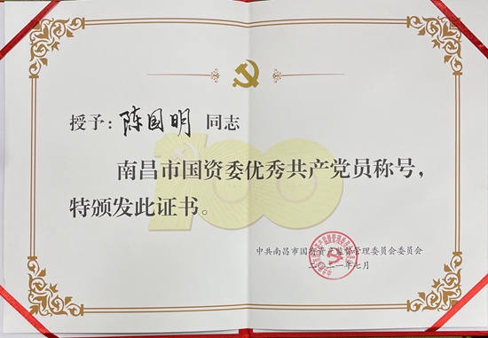 在隆重紀念中國共產(chǎn)黨成立100周年之際,南昌市國資委和南昌旅游集團于近日對一批來自各條工作戰(zhàn)線上的優(yōu)秀黨員和優(yōu)秀黨務工作者及先進基層黨組織進行了表彰,獎勵他(她)們在各自的工作崗位上履職盡責創(chuàng)先進、立足崗位爭優(yōu)秀,在推動企業(yè)高質(zhì)量發(fā)展中充分發(fā)揮戰(zhàn)斗堡壘和先鋒模范作用。其中,公司陳國明同志榮獲市國資委“優(yōu)秀共產(chǎn)黨員”稱號,公司黨委被評為南旅集團“先進基層黨組織”,黨員職工胡穎明、徐小蘭、王昕、王貞同志獲南旅集團“優(yōu)秀共產(chǎn)黨員”稱號。