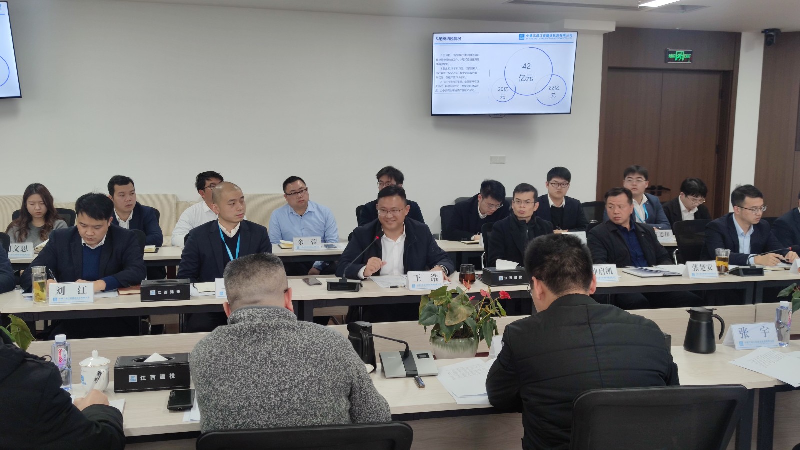 座談會(huì)上,與會(huì)人員觀看了中建三局和中建三局江西建設(shè)投資有限公司企業(yè)宣傳片。江西建投公司黨委副書記、執(zhí)行總經(jīng)理王浩介紹了中建三局及江西建投公司在贛發(fā)展情況,以及所建設(shè)的重點(diǎn)工程項(xiàng)目。公司黨委書記、董事長(zhǎng)王彥簡(jiǎn)要介紹了公司目前生產(chǎn)經(jīng)營(yíng)現(xiàn)狀,以及現(xiàn)階段企業(yè)發(fā)展中存在的難點(diǎn)、堵點(diǎn)問(wèn)題,希望借此機(jī)會(huì)向同行單位學(xué)習(xí)好的管理經(jīng)驗(yàn)和管理辦法。