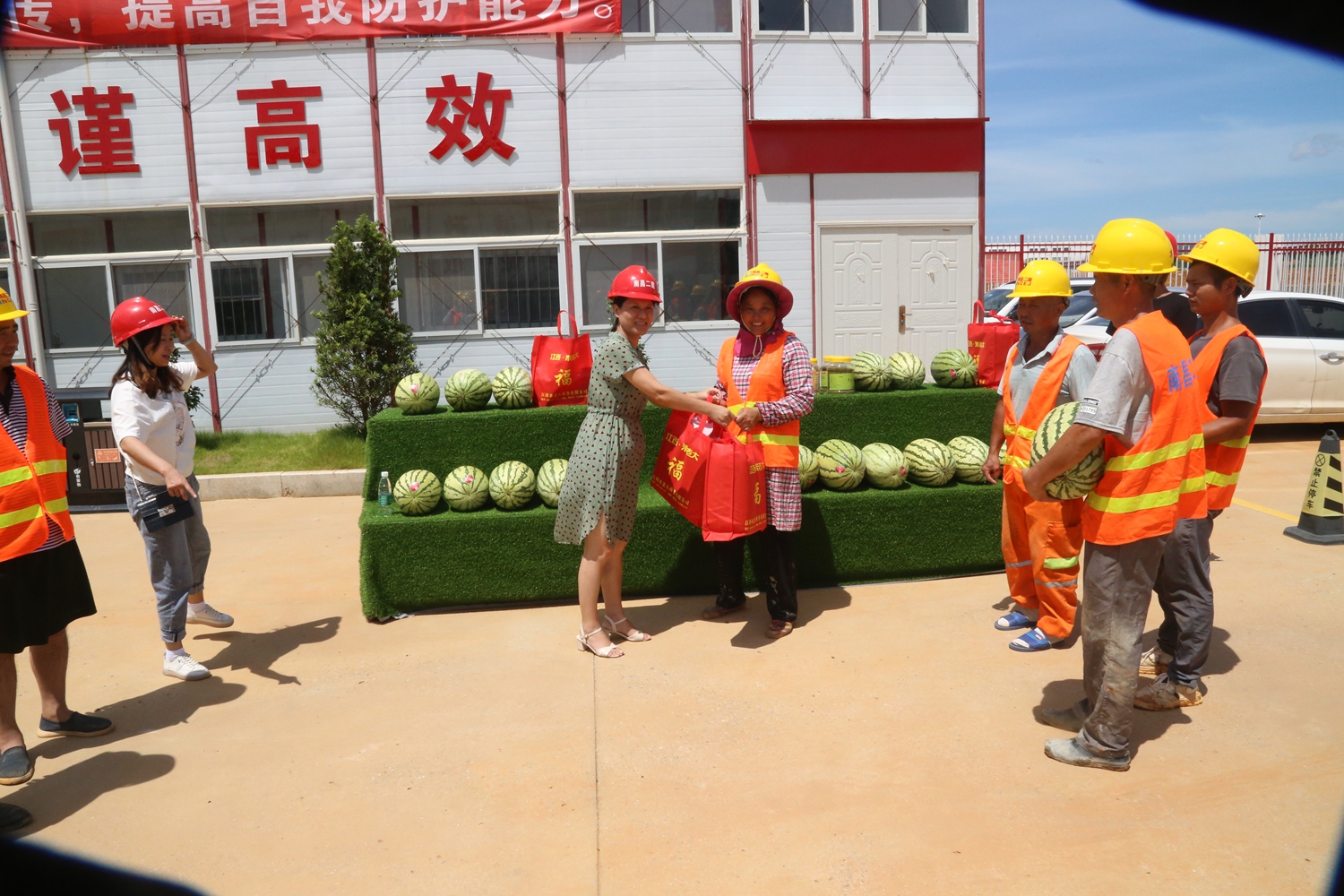 時值高溫,公司工會關(guān)心一線生產(chǎn)員工。黨委委員、工會主席付蓉一行,于8月13日、14日連續(xù)兩天,帶著防暑降溫用品,走訪了滕王閣南擴、繩金塔民俗風(fēng)情街、南昌市第六糧庫易址重建等建設(shè)項目,代表公司看望慰問戰(zhàn)斗在一線的建設(shè)者們,并檢查了工地食堂、住宿等生活設(shè)施,督促項目部在防疫降溫的特殊時期,安全生產(chǎn),平穩(wěn)渡夏。